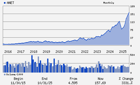 | Arista Networks, Inc. is engaged in providing cloud networking solutions for data centers and cloud computing environments. The company offers 10/25/40/50/100 Gigabit Ethernet switches and routers optimized for next generation data center networks. Arista uses multiple silicon architectures across its products. At the core of the company's cloud networking solutions is the Linux-based Extensible Operating System (EOS), which was architected to be fully programmable and highly modular.EOS supports leading cloud and virtualization solutions, including Microsoft System Center, OpenStack and other cloud management frameworks. The company co-authored the Virtual Extensible LAN (VXLAN) protocol specification with VMware and was the first to demonstrate VXLAN integration. Moreover, it has now expanded VXLAN routing and integration.