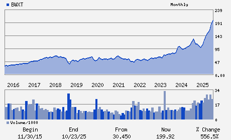 | BWX Technologies, Inc. supplies precision manufactured components and services to the commercial nuclear power industry. The company offers technical, management and site services to governments in complex facilities and environmental remediation activities. It operates primarily in Lynchburg, Va., Ohio and Cambridge, Ontario. BWX Technologies, Inc., formerly known as Babcock & Wilcox Company, is headquartered in Lynchburg, Va.