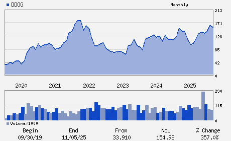 | Datadog Inc. is a monitoring and analytics platform for developers, IT operations teams and business users in the cloud age. The company's business runs around its portfolio of over 400 out-of-the-box integrations including public cloud, private cloud, on-premise hardware, databases and third-party software. The company's Software as a Service platform integrates and automates Infrastructure Monitoring, Application Performance Monitoring, Log Management, User Experience Monitoring, Network Performance Monitoring, Security Monitoring, Incident Management and Continuous Profiler that can be used individually or as a unified solution by customers. The company has a single operating and reportable segment. Solid uptake of its cloud-based monitoring and analytics platform also helped Datadog strengthen customer base. Datadog generates revenues from the sale of subscriptions to customers using its cloud-based platform.