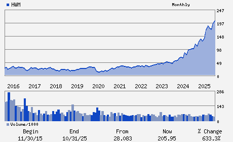 | Howmet Aerospace Inc. engages in providing engineered solutions for customers in the transportation, gas turbine and aerospace (both defense and commercial) industries world wide. It offers forged wheels under the Alcoa Wheels brand & surface treatment under the Dura-Bright brand. It also provides aerospace fastening systems, components used in jet engines and structural parts made of titanium used in defense and aerospace applications. It has 4 reportable business segments. Engine Products engages in manufacturing & providing investment castings including seamless rolled rings & airfoils as well as structural and rotating parts. Fastening Systems manufactures & markets fasteners, fluid fittings, bearings, latches and installation systems. Engineered Structures manufactures & markets mill products, titanium ingots, titanium forgings, extrusions forming, aluminum forgings, aluminum machined components and other products. Forged Wheels manufactures and markets forged aluminum trailer, truck and bus wheels, etc.