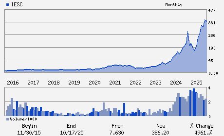 IES Holdings, Inc. provides electrical contracting and maintenance services. The Company's operating segment consists of Communications, Residential, Commercial & Industrial and Infrastructure Solutions. Communications segment is engaged in providing technology infrastructure services. Residential segment is a provider of electrical installation services. Commercial & Industrial segment is engaged in providing electrical design, construction and maintenance services. Infrastructure Solutions segment is engaged in providing electrical and mechanical solutions. It also provides data communication services which include the installation of wiring for computer networks and fiber optic telecommunications systems. IES Holdings, Inc., formerly known as Integrated Electrical Services, Inc., is headquartered in Houston, Texas.