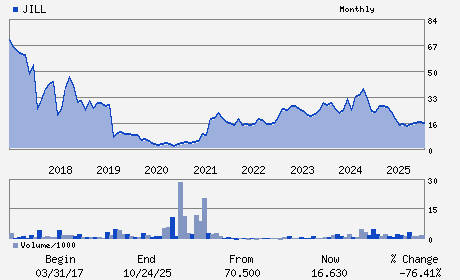 | J.Jill, Inc. operates as a specialty retailer of womens apparel. The Company offers sweaters, tops, pants, dresses, shorts, skirts, sleepwear and accessories. It markets through retail stores, website and catalog. J.Jill, Inc. is headquartered in Quincy, Massachusetts.