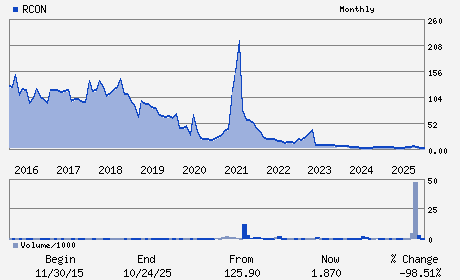 | Zacks Company Profile for Recon Technology, Ltd. (RCON : NSDQ) |