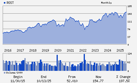 Ross Stores Inc. operates as an off-price retailer of apparel and home accessories, primarily in the United States. The company operates its stores under the Ross Dress for Less (Ross) and dd's DISCOUNTS names. The company's stores are located mostly in community and neighborhood shopping centers in heavily populated urban and suburban areas. Ross Stores primarily offers in-season, branded, and designer apparel, footwear, accessories and other home-related merchandise for everyone in the family. This format primarily targets middle-income households. Prices offered at Ross are generally 20% to 60% below the regular prices of most department and specialty stores. dd's DISCOUNTS features more moderately-priced first-quality, in-season, name brand apparel, accessories, footwear, and home fashions for the entire family. These stores target moderate-income households. The dd's DISCOUNTS stores offer products at a 20% to 70% lesser price than the moderate department and discount stores.