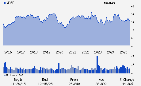 WAFD INC operates as a bank holding company which provides lending, depository, insurance and other banking services principally in the United States. WAFD INC., formerly known as Washington Federal Inc., is based in Seattle, Washington.