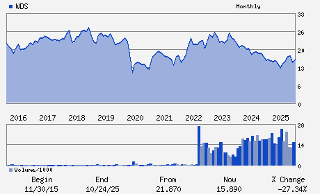| Woodside Energy Group Ltd engages in the exploration, evaluation, development, production and marketing of hydrocarbons principally in the Asia Pacific, Africa, the Americas and the Europe. The company produces liquefied natural gas, pipeline gas, crude oil and condensate and natural gas liquids. Woodside Energy Group Ltd, formerly known as Woodside Petroleum Ltd, is based in Perth, Australia.