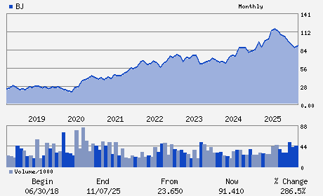 | BJ's Wholesale Club Holdings, Inc. is an operator of membership warehouse clubs primarily in the Eastern United States. The company operates clubs and BJ's Gas(R) locations in states. It provides shopping destination which includes exclusive Wellsley Farms(R) and Berkley Jensen(R) brands, along with USDA Choice meats, premium produce and delicious organics. BJ's Wholesale Club Holdings, Inc. is based in WESTBOROUGH, Mass.