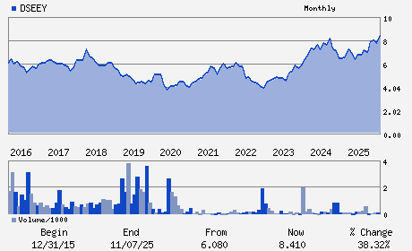 | Daiwa Securities Group Inc. is engaged in providing comprehensive financial services by operating in businesses such as retail and wholesale securities, investment, asset management, as well as system support and research services. Daiwa offers consulting and online trading and handling a complete spectrum of financial products and services through its retail business and provides brokerage, investment banking and M&A advisory services through its wholesale business. Its investment business focuses largely on venture capital investments, organizing and managing of private equity funds and conducting direct investments in monetary claims. The Company's asset management business is involved in creating and managing investment trusts, offering pension fund management and management of REIT (Real Estate Investment Trust). It also offers system-consulting and system-integration service for outside-Group clients. Daiwa Securities Group Inc. is headquartered in Tokyo, Japan.