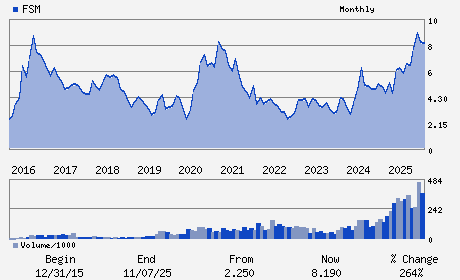 | Fortuna Mining Corp. engages in the precious and base metal mining primarily in Argentina, Burkina Faso, Mexico, Peru and C?te d'Ivoire. The company primarily explores for silver, lead, zinc and gold. Fortuna Mining Corp., formerly known as Fortuna Silver Mines Inc., is based in Vancouver, Canada.
