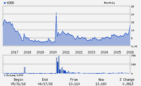 | Eastman Kodak Company is a technology company. It provides hardware, software, consumables and services to customers in graphic communications, packaging and functional printing. It operates in two segments: Graphics, Entertainment and Commercial Films (GECF) and Digital Printing and Enterprise (DP&E). The GECF segment consists of the Graphics and Entertainment & Commercial Films groups, as well as Kodak's intellectual property and brand licensing activities. The DP&E Segment consists of Digital Printing, Packaging and Functional Printing, Enterprise Services & Solutions, and Consumer Inkjet Systems businesses. The Company serves entertainment and commercial films markets. Eastman Kodak Company is headquartered in Rochester, New York.