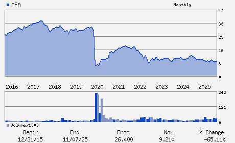 | MFA Mortgage Investments, Inc. operates as a real estate investment trust primarily engaged in the business of investing in mortgage-backed securities. The company also has indirect investment in Lealand Place, a multifamily apartment property located in Lawrenceville, Georgia. In addition, it provides investment advisory services to a third-party institution with respect to their MBS portfolio investments.