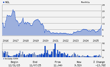 | NGL Energy Partners LP is a limited partnership operating a vertically-integrated propane business with three operating segments: retail propane; wholesale supply and marketing; and midstream. The Retail Propane segment engages in retail marketing, sale, and distribution of propane, including the sale and lease of propane tanks, equipment, and supplies to residential, agricultural, commercial, and industrial customers through customer service locations. The Wholesale Supply and Marketing segment supplies propane and other natural gas liquids, as well as provides related storage to retailers, wholesalers, and refiners. The Midstream segment involves in the delivery of propane from pipelines or trucks to propane terminals and transfers the propane to third-party transport trucks for delivery to retailers, wholesalers, or other consumers. NGL Energy Partners LP is headquartered in Tulsa, Oklahoma.