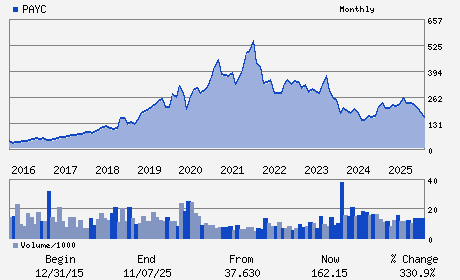 | Paycom Software, Inc. is a provider of cloud-based human capital management (HCM) software as a service solution for integrated software for both employee records and talent management processes. The company offers analytics that manages the complete employment life cycle from recruitment to retirement. Its human resource services include retirement services administration, workers' compensation administration, employee benefit solutions, professional employer organization and other administrative services for businesses. Paycom's HCM solution offers a full suite of applications that generally falls within the following categories, namely talent acquisition, time and labor management, payroll, talent management and HR management. Its HCM software streamlines and automates many of the day-to-day record-keeping processes and provides a framework for HR staff to manage benefits administration and payroll, and map out succession planning and documents.