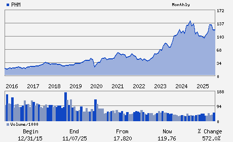 | PulteGroup Inc. engages in homebuilding and financial services businesses in the United States. The company conducts operations through two primary business segments - Homebuilding and Financial Services. The Homebuilding segment offers a wide variety of home designs including single family detached, townhouses, condominiums and duplexes at different prices, with a variety of options and amenities to all major customer segments: first-time, move-up and active adult. Pulte's brand portfolio includes Pulte move-up brand, Centex first-time brand, Del Webb active adult, DiVosta Homes and John Wieland Homes and Neighborhoods. The homebuilding division is broken down into six reportable segments; Northeast, Southeast, Florida, Texas, Midwest and West. Pulte's Financial Services business includes mortgage banking and title operations through Pulte Mortgage and other subsidiaries. Pulte Mortgage arranges financing by originating mortgage loans for homebuyers.
