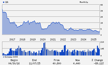 | Under Armour, Inc. is involved in the development, marketing and distribution of branded performance apparel, footwear and accessories for men, women and youth. It operates primarily in North America, Europe, the Middle East, Africa, the Asia-Pacific and Latin America. The company's Under Armour Connected Fitness(TM) platform provides digital health and fitness community through UA Record, MapMyFitness, Endomondo and MyFitnessPal applications. Under Armour, Inc. is headquartered in Baltimore, Maryland.