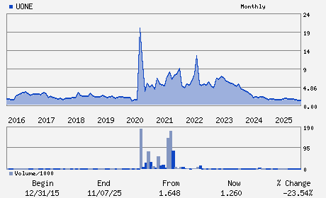 | Urban One, Inc. engages in the radio broadcasting operation primarily in African-American and urban listeners. Its operating segment consists of Radio Broadcasting, Reach Media, Internet and Cable Television. Radio Broadcasting segment includes all the broadcasting related operations. Reach Media segment consists of the Tom Joyner Morning Show and its related activities. Internet segment focuses on its online business, including the operations of Interactive One. Cable Television segment deals with TV One's operations. Urban One Inc., formerly known as Radio One Inc., is headquartered in Silver Spring, MD.