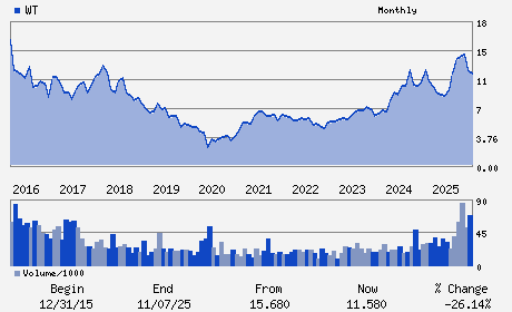 | WisdomTree Inc. is a financial innovator, offering a well-diversified suite of exchange-traded products, models and solutions. It involved in developing digital products and structures, including digital funds and tokenized assets, as well as our blockchain-native digital wallet, WisdomTree Prime(TM). WisdomTree Inc., formerly known as WISDOMTREE INV, is based in NEW YORK.